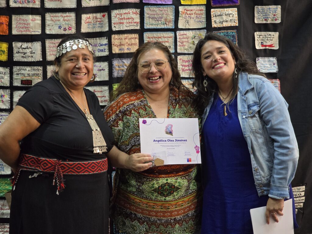 Este proyecto que fue financiado por el Fondo Nacional de Desarrollo Cultural y las Artes (FONDART) exploró los oficios textiles del telar mapuche y la arpillera, permitiéndole a mujeres de distintos territorios y edades compartir saberes, relatos y memorias a través de la creación. En este proceso, el arte textil se consolidó como herramienta de expresión, reparación y construcción de espacios colectivos de contención frente a experiencias de violencia y exclusión.