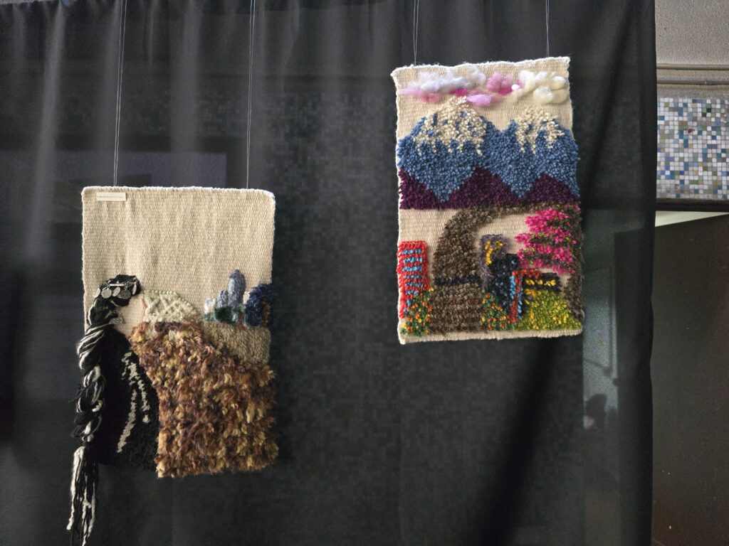 Parte de las muestras del tercer ciclo del taller de telar mapuche con la técnica del chañuntuko, donde los trabajos retratan la territorialidad del río Mapocho
