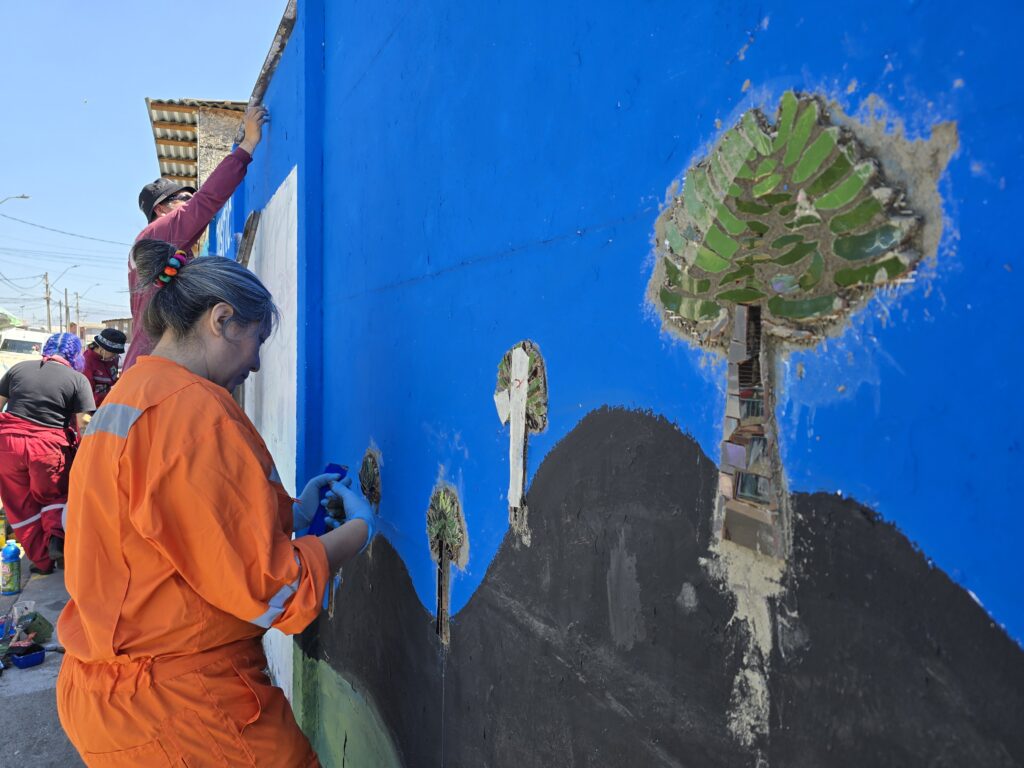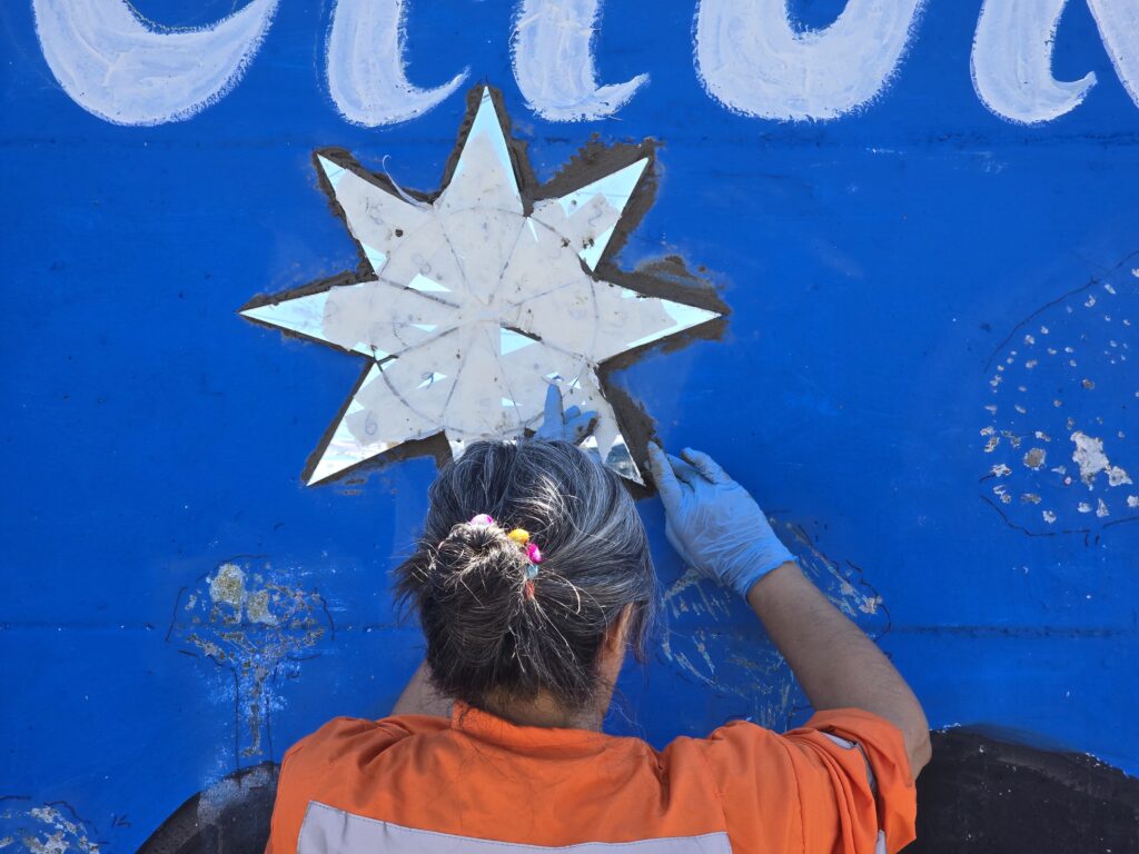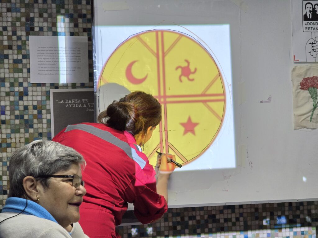 Alrededor de 8 horas estuvieron realizando en este mural, el que es el resultado de meses de aprendizaje y de trabajo de este taller que tuvo su primer ciclo el 2024 y continuó este 2025. Este curso —financiado por el Programa Sitios de Memoria, de la Unidad Sitios de Memoria, del Servicio Nacional del Patrimonio— estuvo enfocado en mujeres mayores de 40 años y tenía como uno de sus objetivos principales acompañar a las participantes a través de la escucha activa para fortalecer la transmisión oral y la colectividad. La técnica del mosaico fue utilizada como herramienta de arte terapia, pero además, como un paso hacía la autovalía y la autogestión.