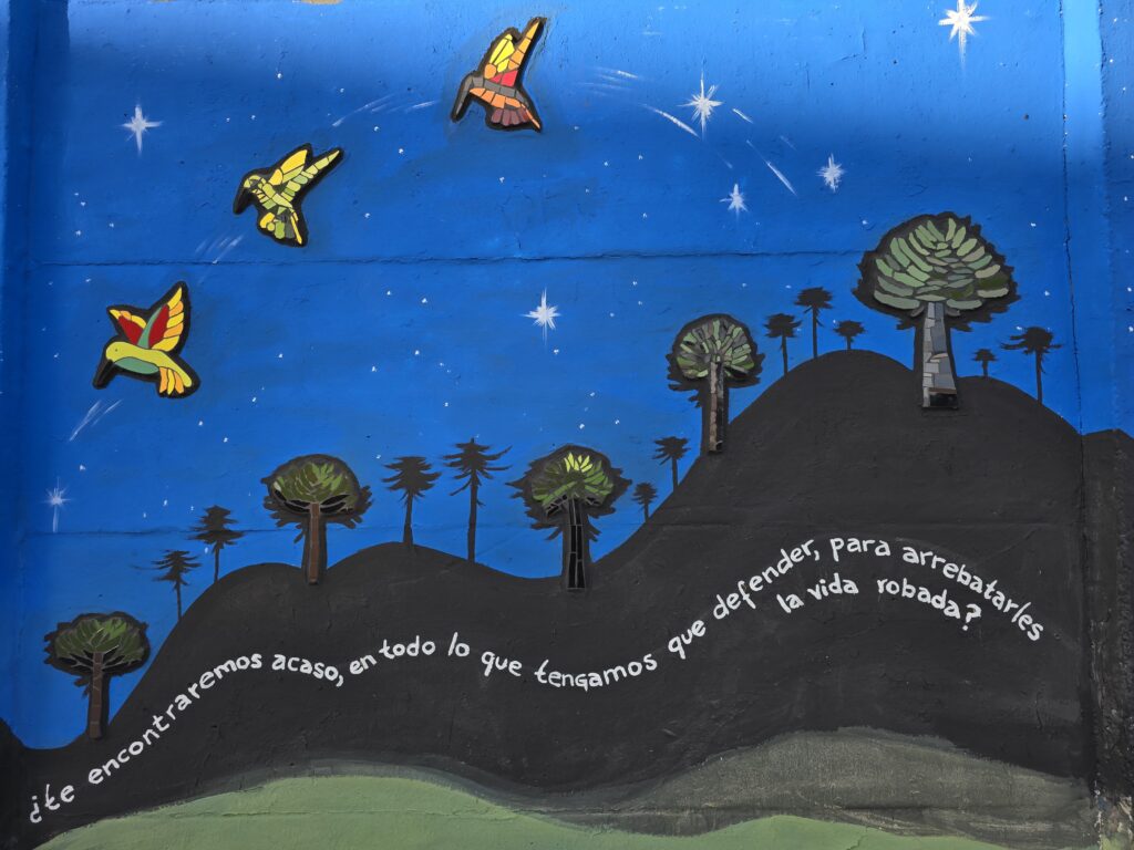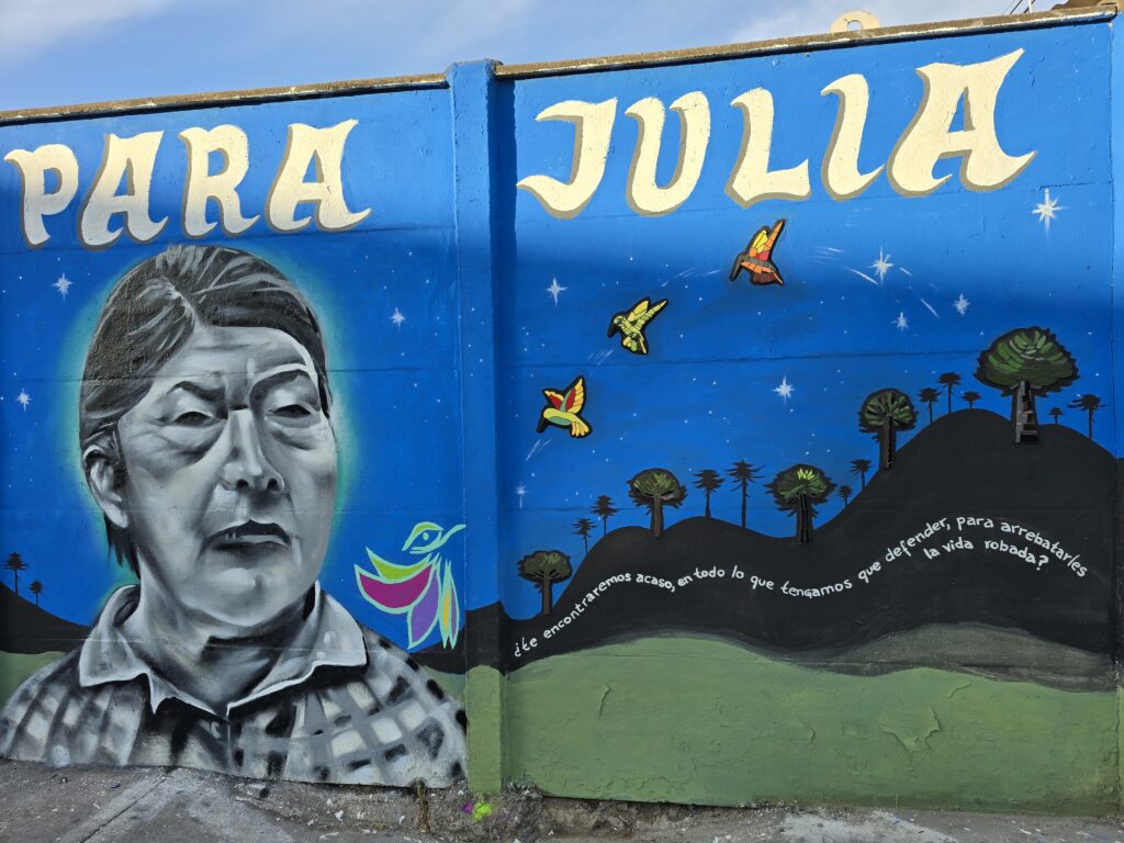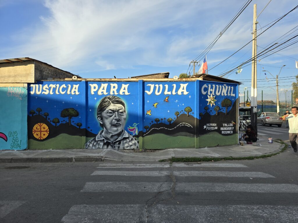 De acuerdo a Nataly Vargas, una de las talleristas del curso, «la importancia de esta última parte del proceso fue que las estudiantes aprendieran a instalar en la calle, desde escoger el muro, poder fraguar. Con esta intervención callejera visibilizamos y reivindicamos a Julia Chuñil». Recordar que la defensora ambiental mapuche Julia Chuñil desapareció el 8 de noviembre de 2024 y hasta el día de hoy no es hallada. La mujer de 62 años era presidenta de la Comunidad Indígena Putreguel y se encargaba de la defensa del bosque nativo y la protección de tierras ancestrales mapuche en las comunas de Máfil y Los Lagos, en Región de Los Ríos.