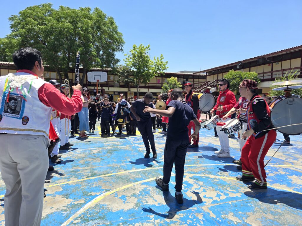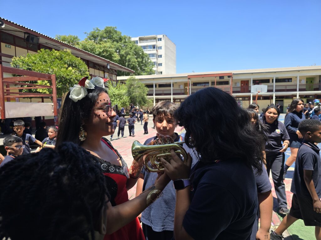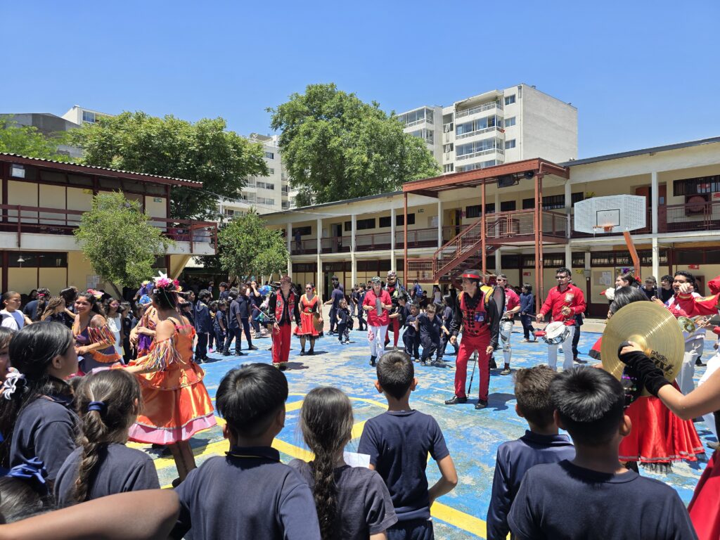 Durante este 2025 la Fundación Victor Jara, a través del financiamiento del Programa Sitios de Memoria, programó y coordinó visitas en cuatro instituciones educativas de la Región Metropolitana. En ellas, se realizaron intervenciones artísticas para promover una cultura de derechos humanos a las y los estudiantes.