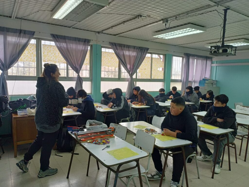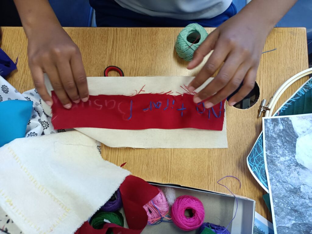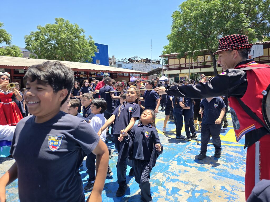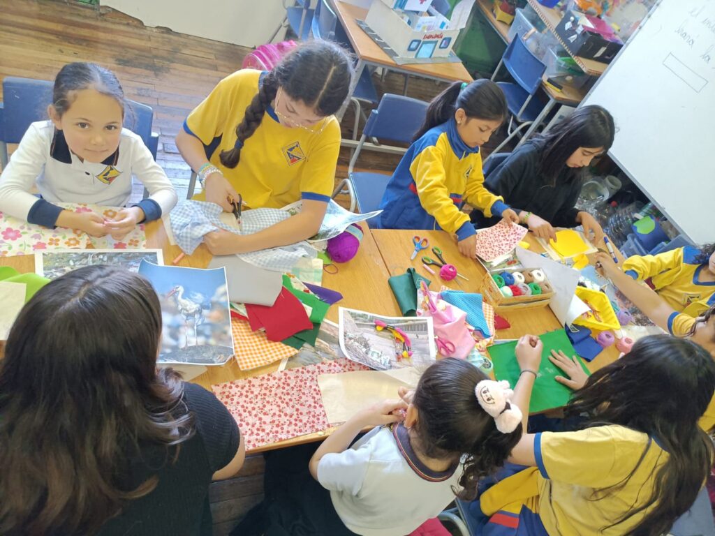 «En el caso de la Escuela República de Ecuador, desde el establecimiento nos contaron que tenían el interés que las niñas aprendieran la técnica del bordado, a raíz de eso nos contactaron ya que sabían que como Fundación Victor Jara realizábamos talleres de arpilleras. Por último, para el caso de la Escuela República de Colombia, escogimos la intervención de la Chinchintirapié para dar una continuidad y fortalecer el trabajo que hemos hecho en conjunto desde las Colonias y los Talleres «Girasol», además, porque en esta escuela hay una alta población migrante, entonces quisimos rescatar y reivindicar las raíces latinoamericanas y la diversidad cultural de nuestro país. La Chinchintirapié representa muy bien estas temáticas, porque recogen distintos ritmos en sus presentaciones», sostuvo.