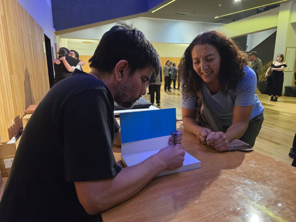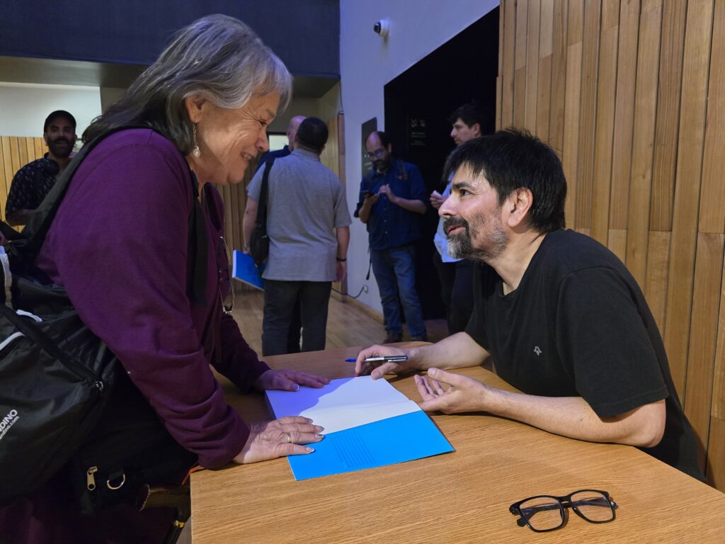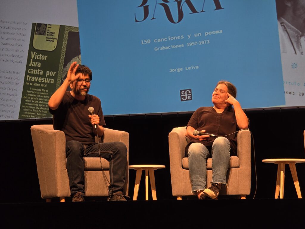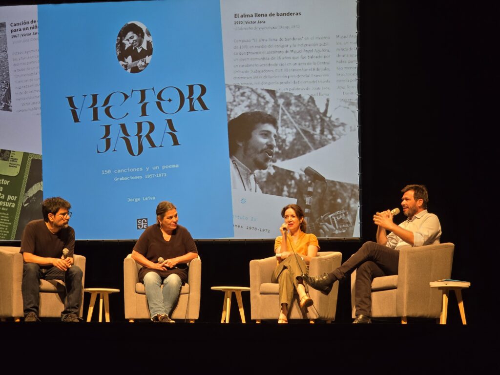 El periodista Pablo Aranzaes fue el encargado de moderar la conversación que mantuvo el autor del libro, Jorge Leiva, en compañía de la hija de Victor, Amanda Jara, quien además es la presidenta de la Fundación que lleva el nombre del cantautor. El panel también estuvo integrado por Marisol García, periodista musical.