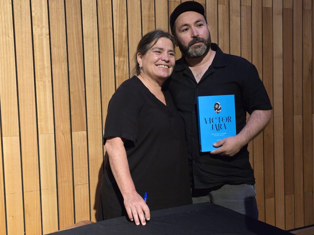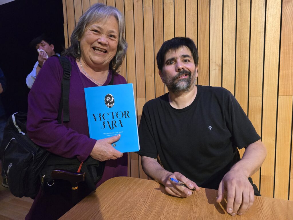 Jorge Leiva y Amanda Jara en el lanzamiento del libro Víctor Jara: 150 canciones y un poema