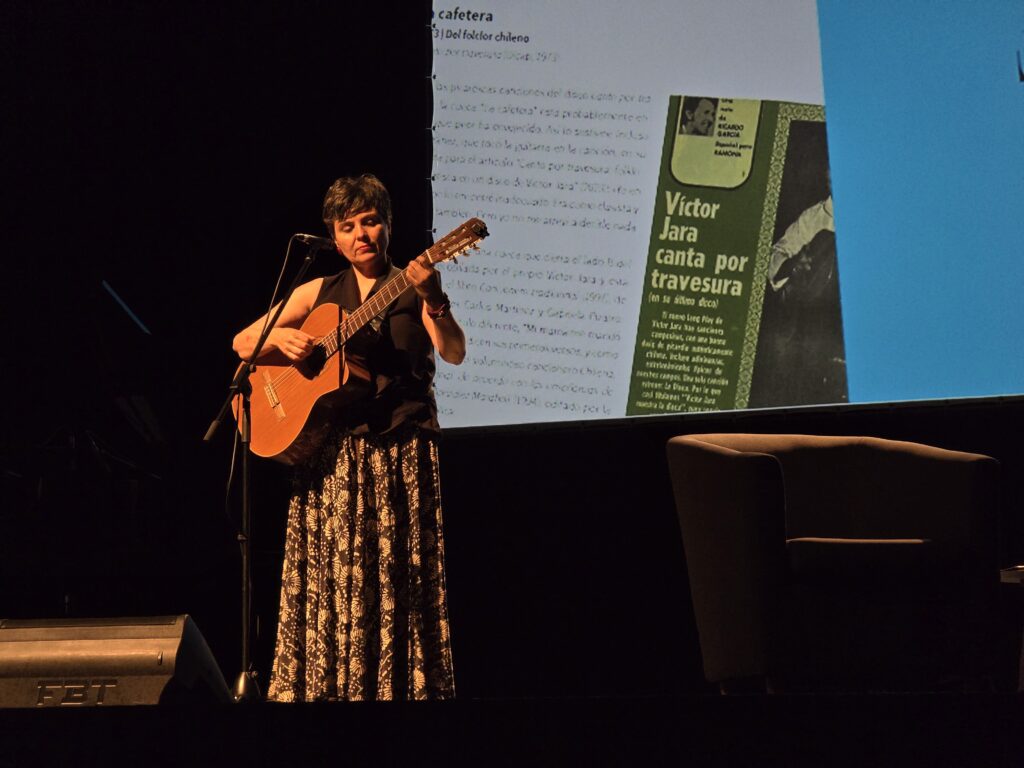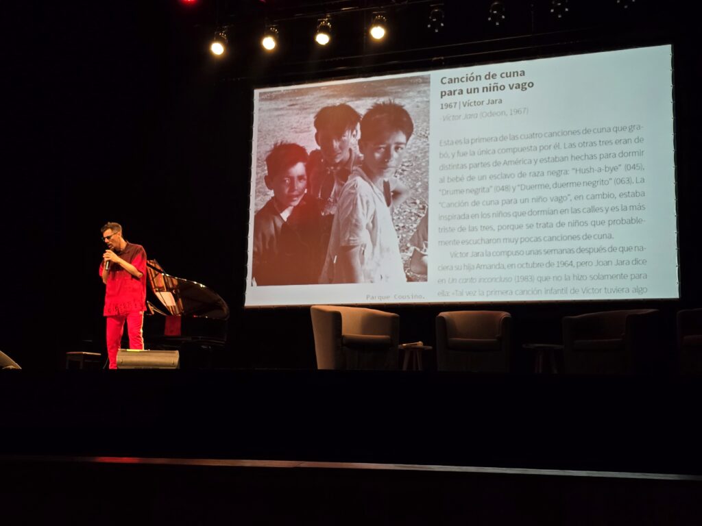 Durante el diálogo, Amanda Jara se refirió a la pérdida de su padre, Victor Jara, que fue asesinado cuando él tenía 40 años. «Perder al papá casi a los 9 años fragmenta algo que se hace pedacitos. Con mi mamá y hermana, tuvimos la suerte —digamos— de recuperar su cuerpo, pero además contábamos con un archivo propio con fotografías, entrevistas e incluso teníamos el privilegio de conservar su voz. Tras los años, recibo la experiencia de otros sobre mi papá. Entonces esa memoria fragmentada por un trauma se va reconstruyendo con el relato de otras personas. Es fuerte cuando otros te devuelven al papá. Te devuelven pedazos y uno lo va armando. Pero es bonito eso, porque siempre estoy descubriendo a mi papá. Mi papá está muy aquí y eso es maravilloso», confesó Jara.