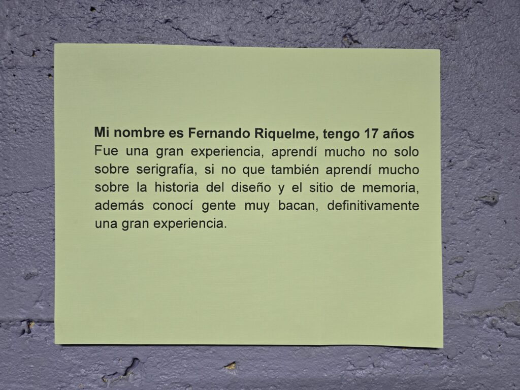 Ana González, encargada de educación, afirmó que «para la Fundación ha sido súper importante porque es el primer taller de la Escuela Popular: jóvenes, memorias y derechos humanos, donde participaron jóvenes entre 15 y 17 años. Fue una instancia en la que pudimos visibilizar su experiencia de trabajar en un sitio de memoria con una técnica bella como lo es la serigrafía, pero donde también, dentro de este aprendizaje, les enfatizamos en la relevancia de valorar la memoria, los derechos humanos y la historia reciente. En este proceso vimos cómo ellos han transitado desde lo individual a lo colectivo».