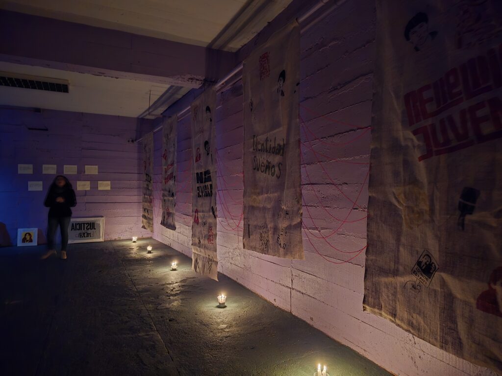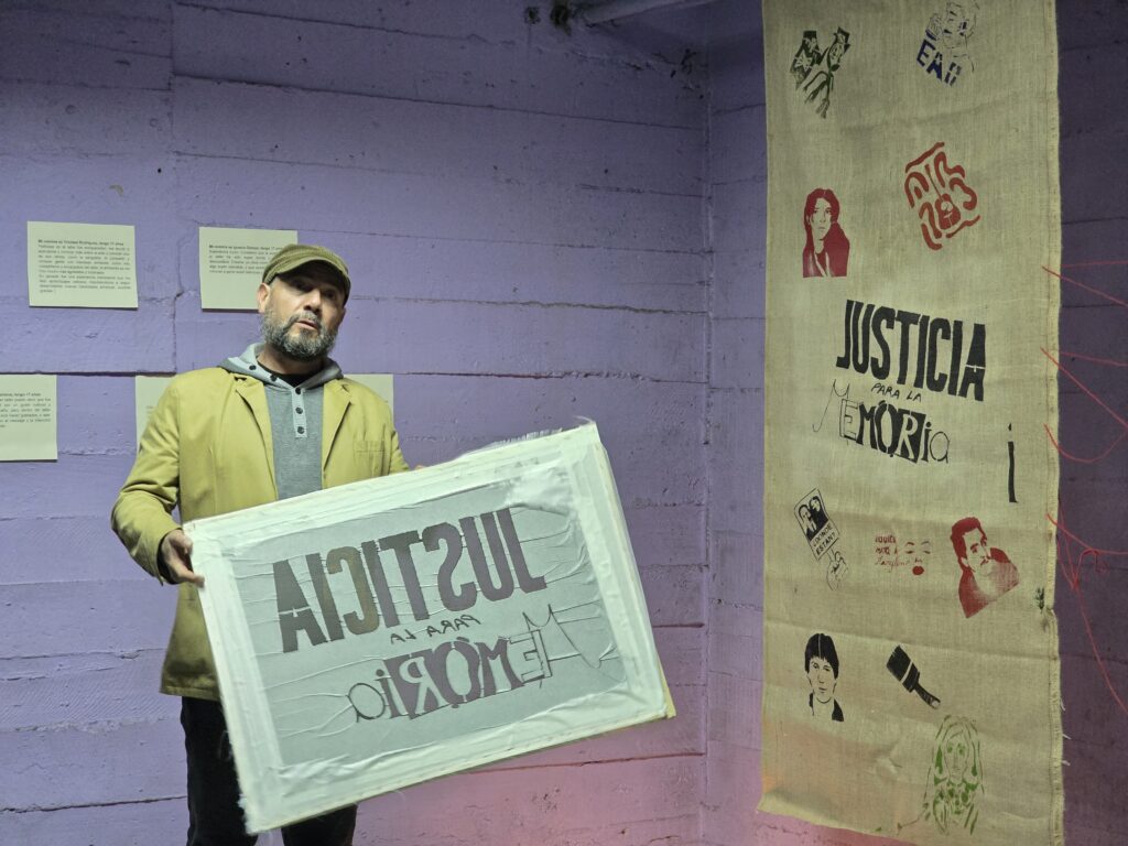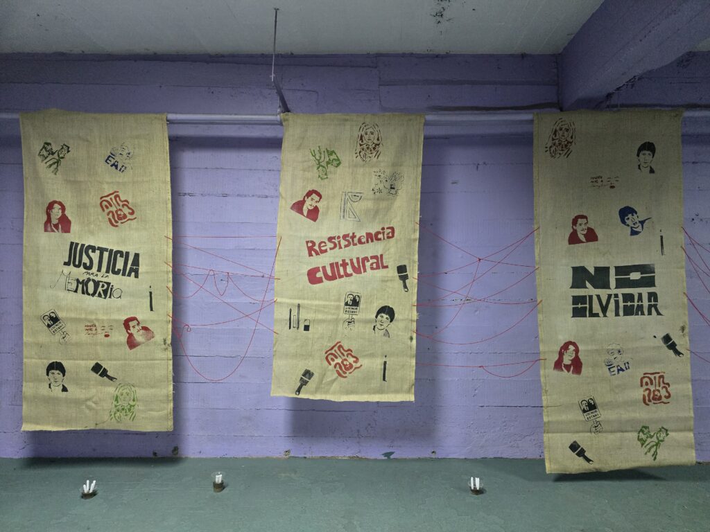 Tras la visita guiada en el Sitio de Memoria en la que participaron las y los estudiantes decidieron, junto a su profesor, Francisco Sutherland, que la exhibición final la harían en un espacio del recinto que es denominado como el «polígono», que antes del Golpe de Estado de 1973 era un gimnasio, pero cuando el ex Estadio Chile fue usado como centro de detención, tortura y exterminio, en dicho espacio, militares realizaron simulacros de fusilamiento para torturar a las y los prisioneros políticos. Esta intervención artística en el «polígono» fue un acercamiento a la memoria, un homenaje, y un enfásis al «no olvidar».